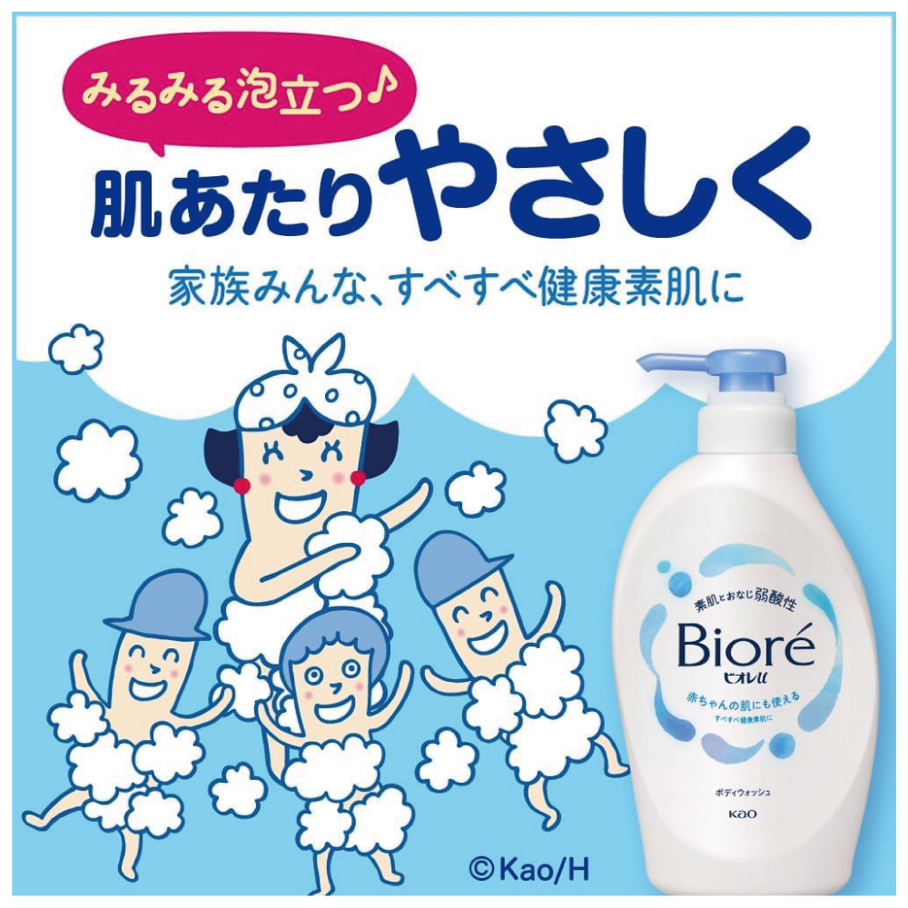 みるみる泡立ち、肌あたりやさしく洗える家族の肌想いなボディウォッシュ。肌への刺激の一因となる汚れを落として、肌本来のうるおいは守って洗い、家族みんな、すべすべ健康素肌に。