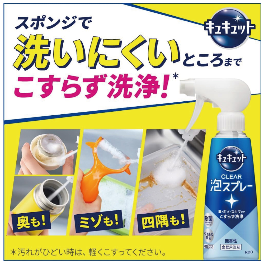 ・スポンジで洗いにくい奥・ミゾ・スキマまで泡が届いて、こすらず洗浄!