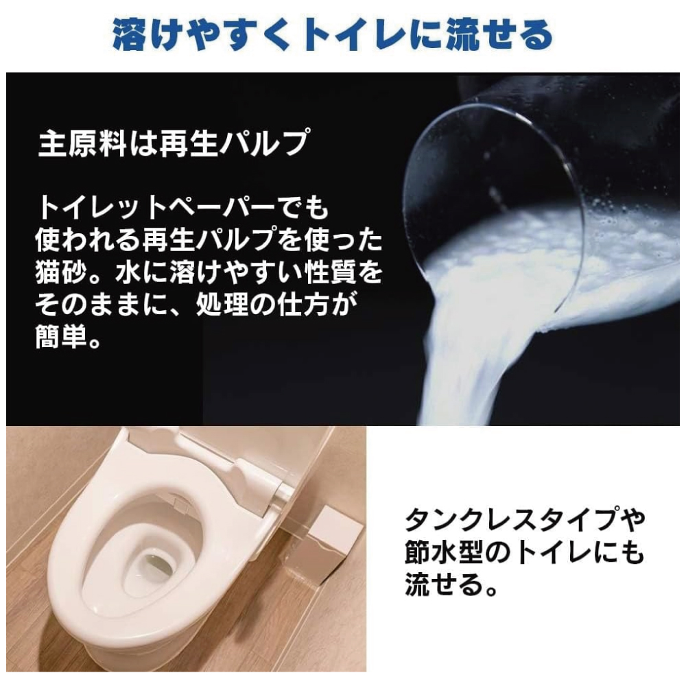 ・溶けやすくそのままトイレに流せる猫砂です。