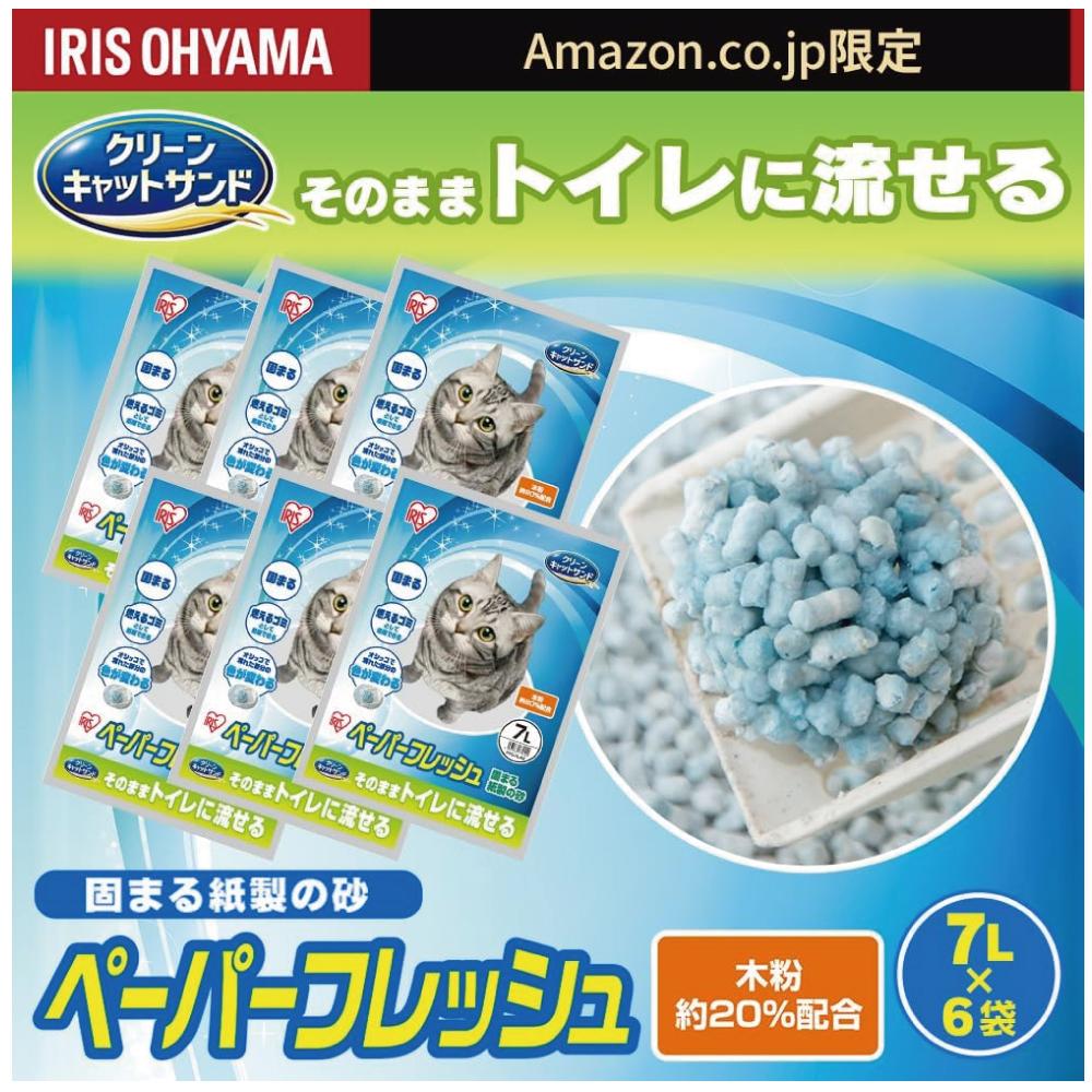【Amazon.co.jp限定】 アイリスオーヤマ 猫砂 ペーパーフレッシュ トイレに流せる 7L×6袋 PFC-7LAZ