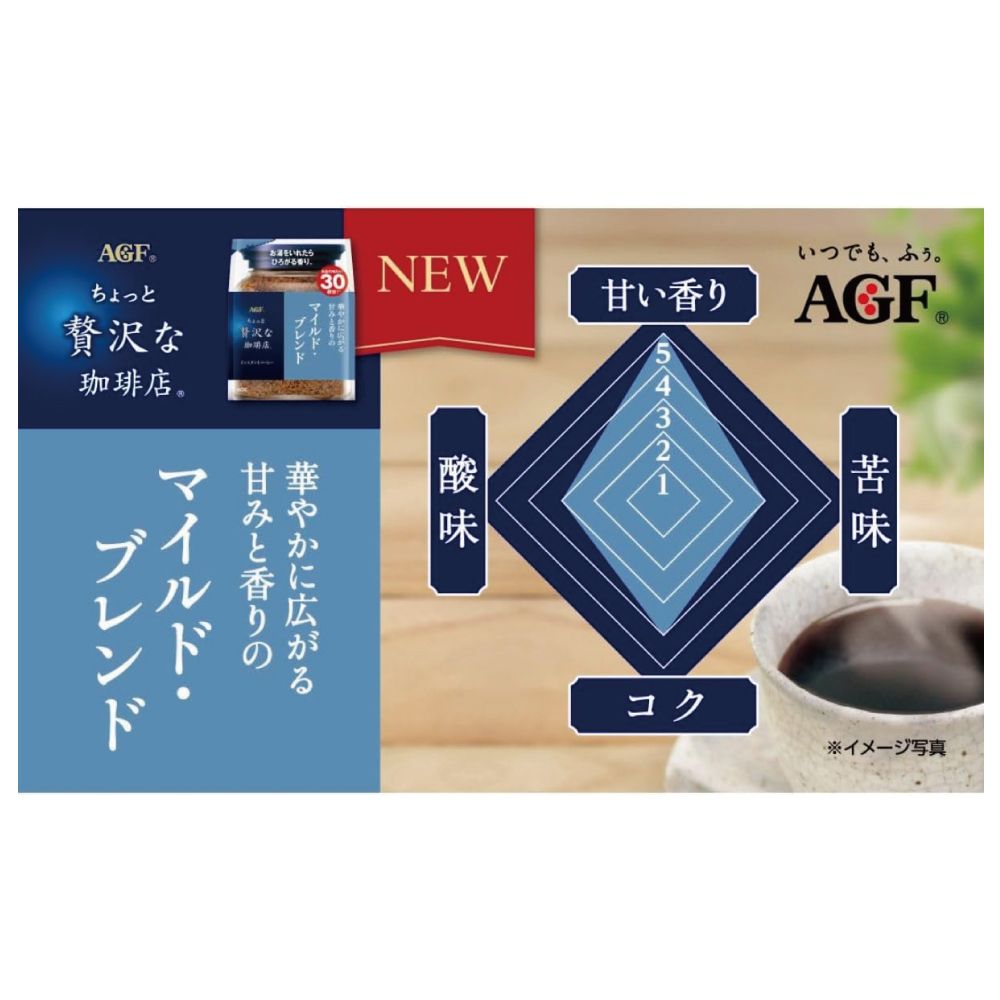 AGF(エージーエフ) 「ちょっと贅沢な珈琲店」 マイルド・ブレンド瓶 80gは、瑞々しい果実のような、華やかに広がる甘みと香りをお愉しみいただけます。