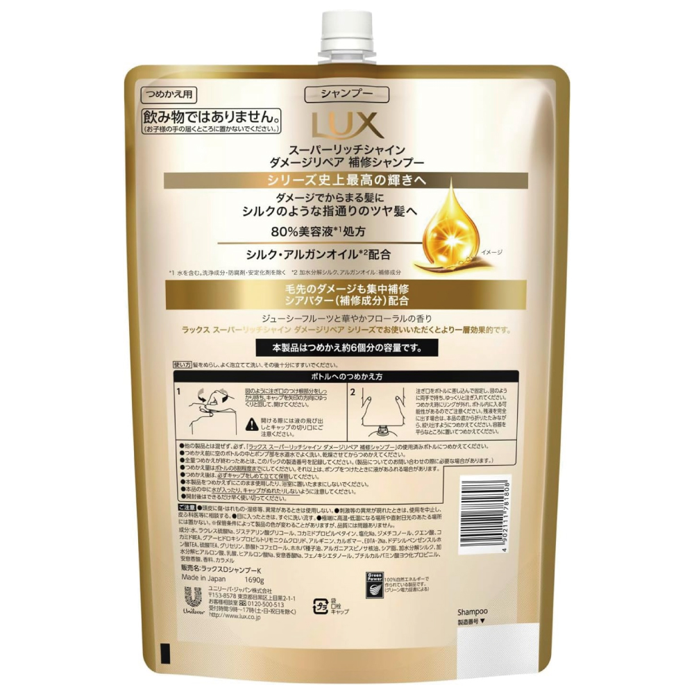LUX (ラックス) スーパーリッチシャイン ダメージリペア シャンプー 詰め替え 1690g
