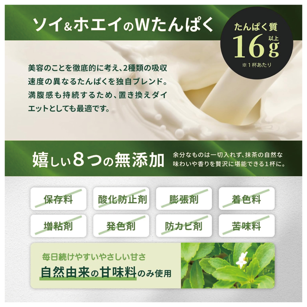 【嬉しい8種の 無添加 】 余分なものは一切入れていません。だからこそ 抹茶 の自然な味わいや香りを楽しむことができる1杯です。さらに植物由来の甘味料のみ使用しております。(保存料、酸化防止剤、膨張剤、着色料、増粘剤、発色剤、防カビ剤、苦味料)