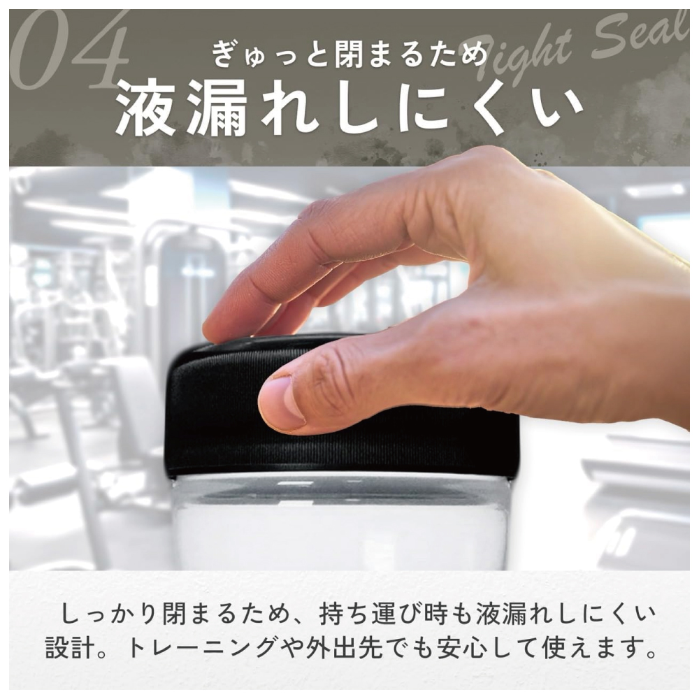 【液漏れ防止】 しっかり閉まるため、持ち運び時も液漏れしにくい設計。トレーニングや外出先でも安心して使えます。