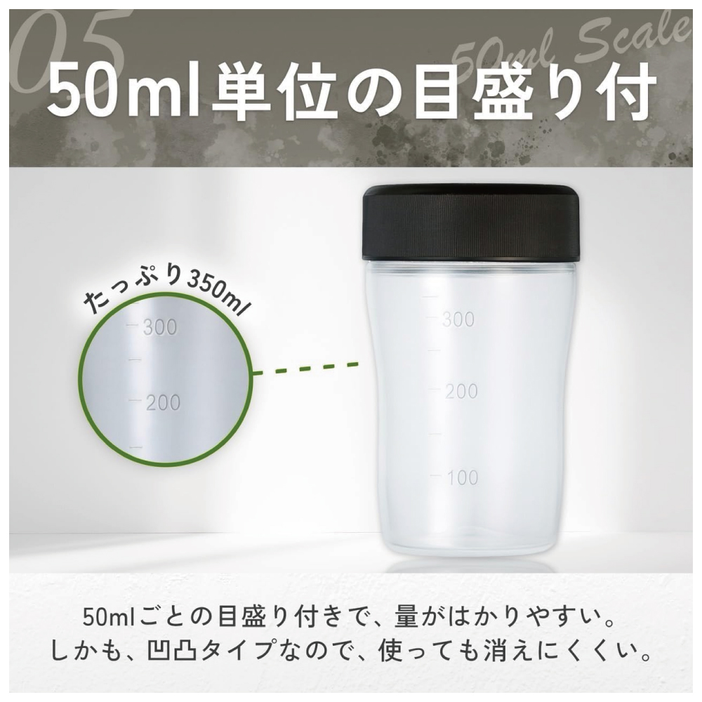 【50ml単位の目盛り付】 50mlごとの目盛り付きで、量がはかりやすい!しかも印刷ではなく凹凸タイプなので、使っても消えにくくて安心です!
