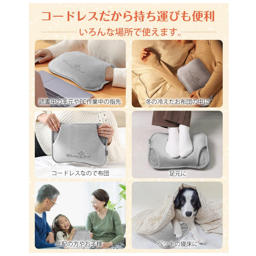 ・手足の冷えに困っている・お腹の冷えが気になる・暖房による乾燥が気になる・お湯の交換が面倒・節電を意識している・いろんな場所で使いたい。寒い冬の贈り物に!