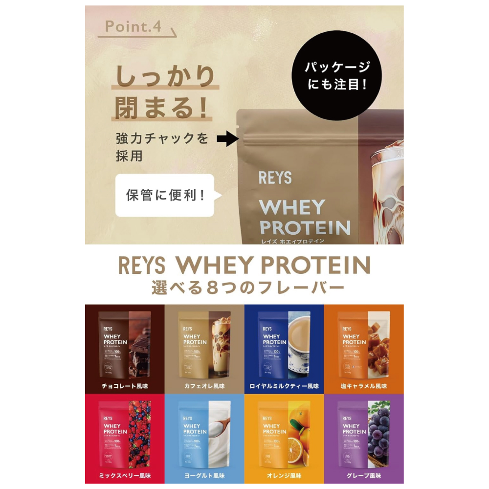 YouTube登録者数95万人突破!山澤礼明監修のREYSより待望のホエイプロテイン(WPC)が誕生!おいしさにこだわり、原料の選定・試作を繰り返し、味・溶けやすさ・お求めやすさを実現したプロテインが完成しました。水で美味しくお召し上がりいただけます。