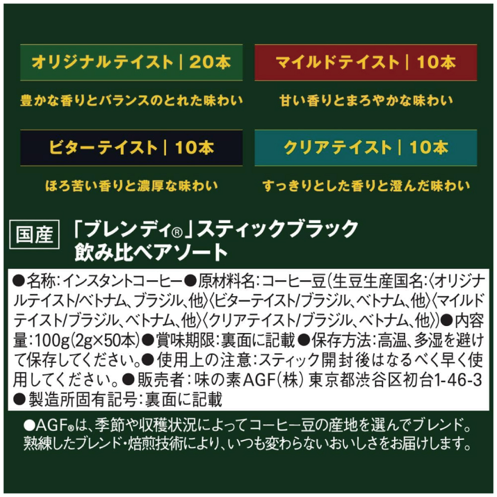 AGF ブレンディ スティックブラック 飲み比べ アソート 50本