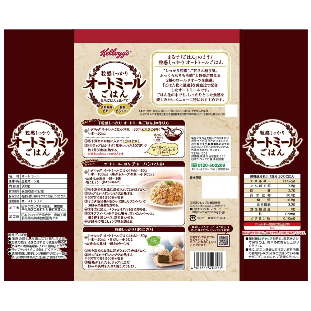 ケロッグ 粒感しっかり オートミールごはん 900g