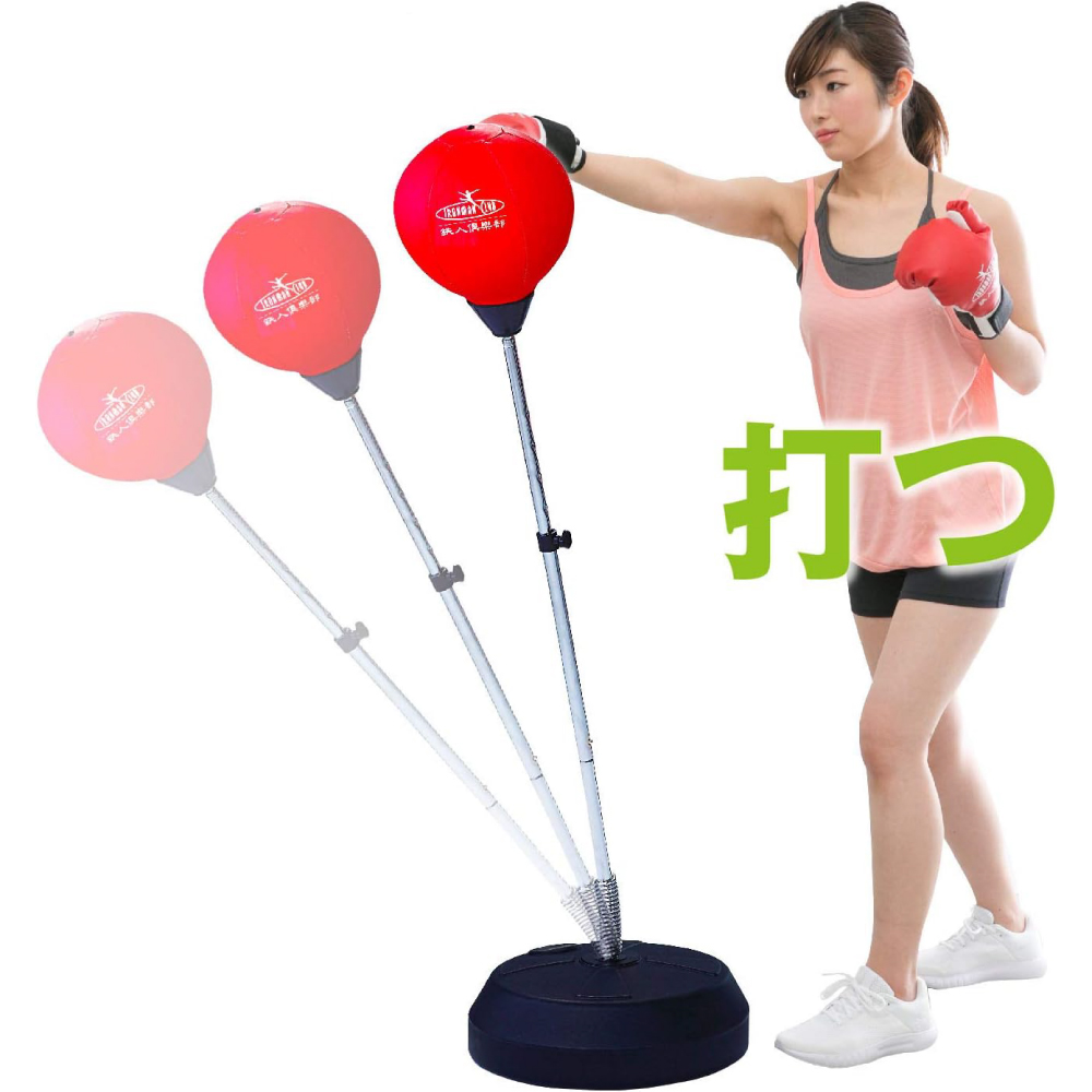 ●パンチングボールで運動不足もストレスも楽しくノックアウト ●下部タンクに水や砂を入れて、支柱の鉄鋼バネの力でかえってくるので、ストレート、フック、アッパーなどの攻撃や、シャドーボクシング、防御などの練習も手軽にできます ●遊び感覚でボクシングが楽しめ、全身の有酸素運動で脂肪を燃焼 ●高さ調節可能で自分にあったボクササイズが楽しめます ※イメージ画像のグローブは付属しません。 ※冬季は硬化しやすい材質です、室温の低下に注意してご使用ください。 ※乗ったり、過度な衝撃を与えないでください。 ※空気の入れすぎにご注意ください、破裂の可能性があります。 ※本製品は水や砂を入れて使用する商品です。
