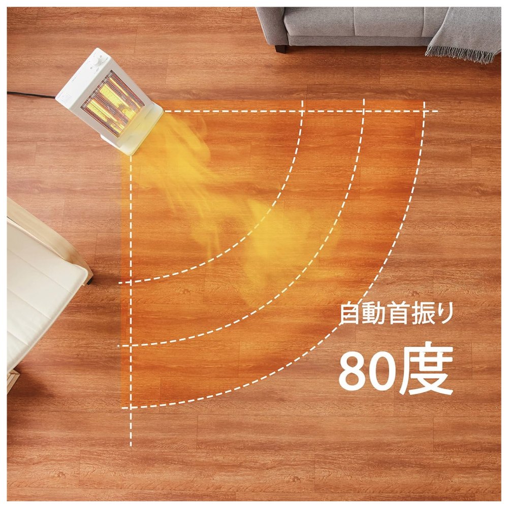 ・自動首振り機能により、80度までの広範囲をくまなく暖める