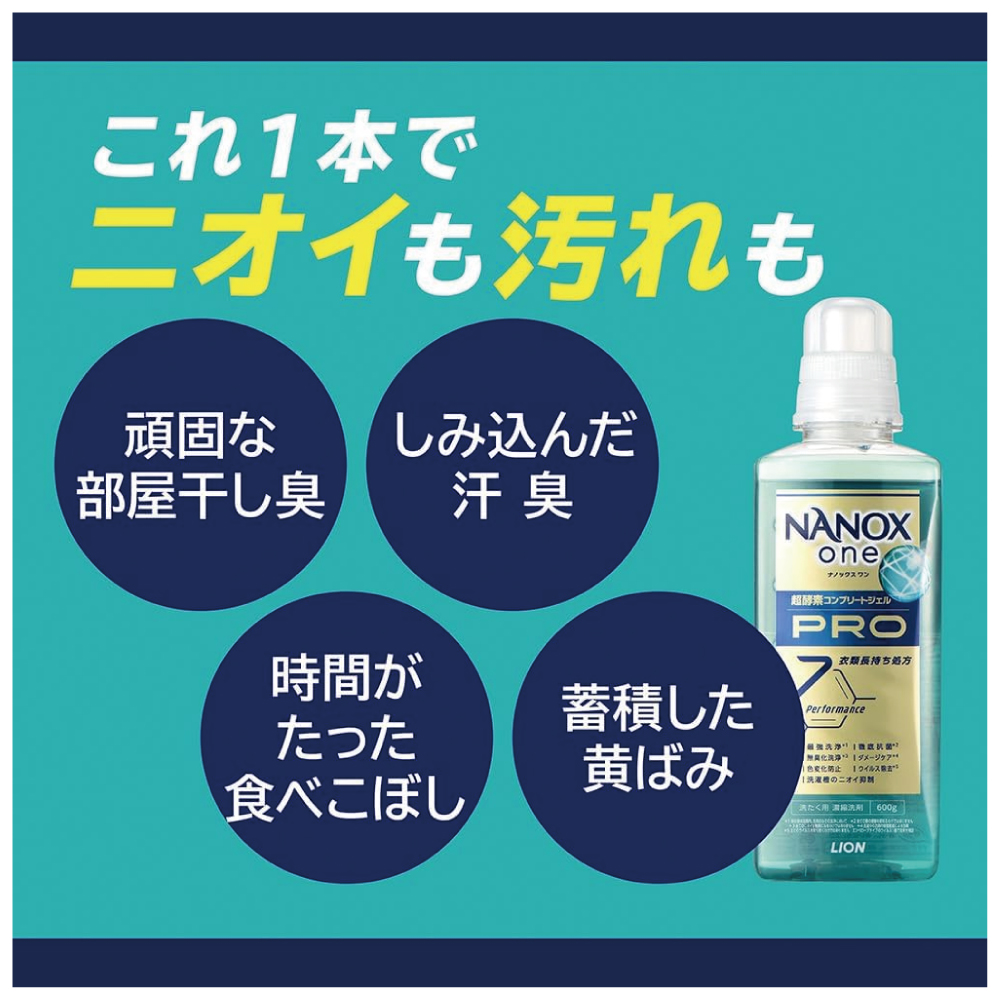 洗浄成分・抗菌剤最大量配合で、ライオン史上最高峰の洗浄・消臭力を実現。頑固な部屋干し臭、しみこんだ汗臭、時間がたった食べこぼし、蓄積した黄ばみまで解決!