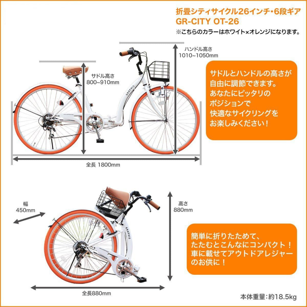 機種名/折りたたみ自転車 シティサイクル 26インチ 6段変速 GR-CITY OT-26