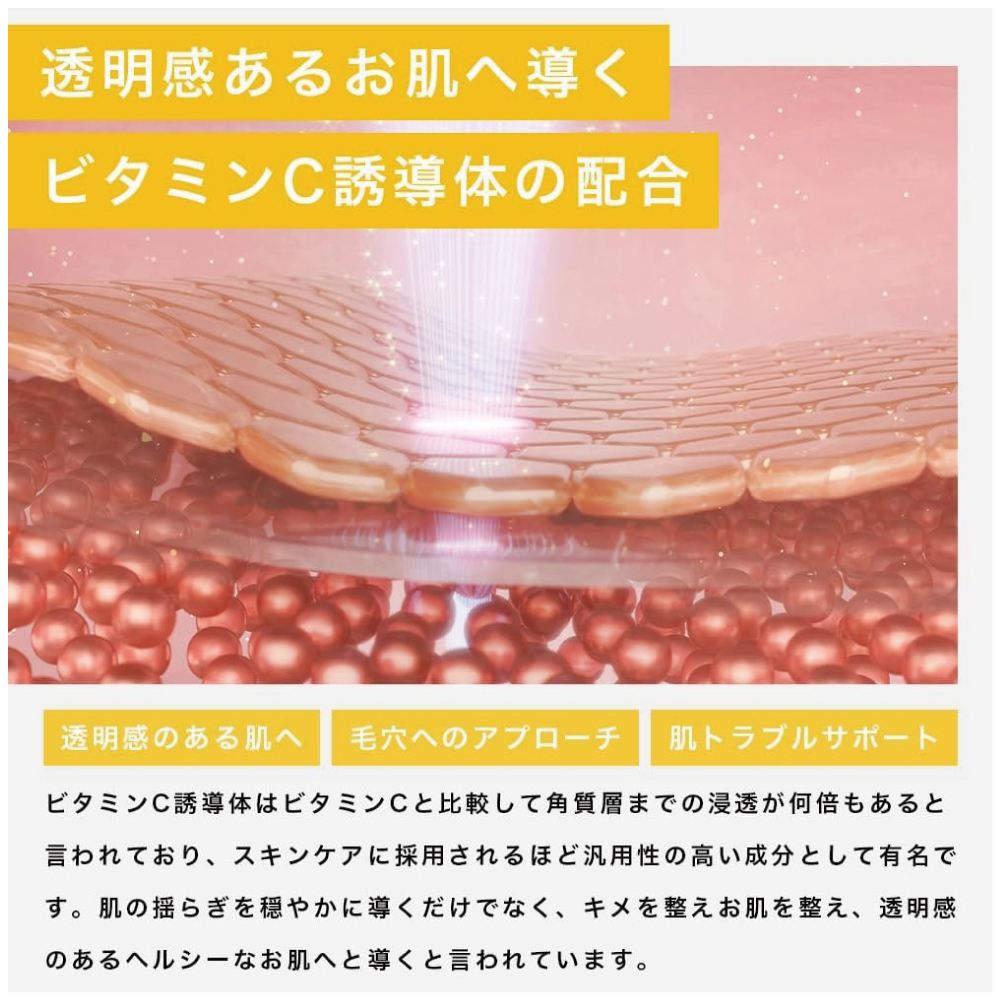 【レチノールで肌を引き締める】引き締め成分であるレチノールを配合。キメの整ったツヤのある肌へと導きます。