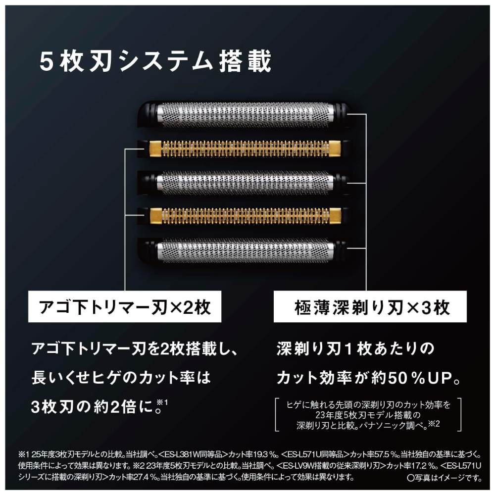 ●5枚刃システム×高速リニアモーターで、濃いヒゲもしっかり深剃り