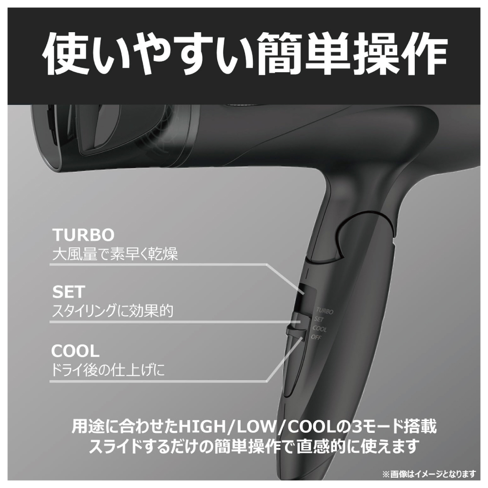 【1.9㎥/分の大風量】髪全体をムラなく乾かしやすい大風量仕様。日常使いに十分なパワーです。