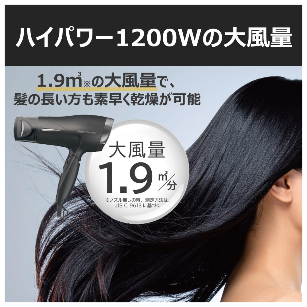 【Amazon.co.jp限定】 コイズミ モノクローム ヘアドライヤー KHD-9322/BK 折りたたみ式 ツインマイナスイオン パワーアップノズル ブラック