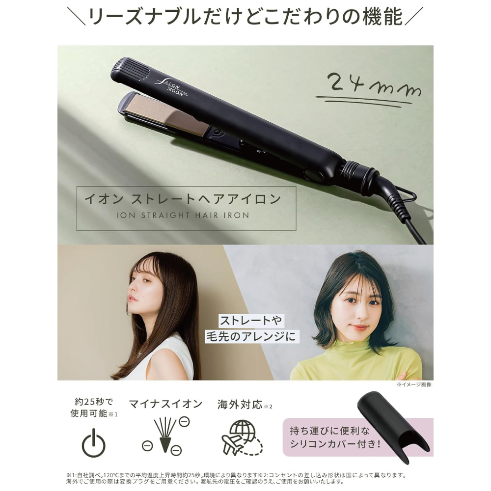 SALONMOON ヘアアイロン ストレート 24mm 2WAY マイナスイオン 海外対応 チタンプレート シリコンカバー付き (ブラック) AM24_S_BK