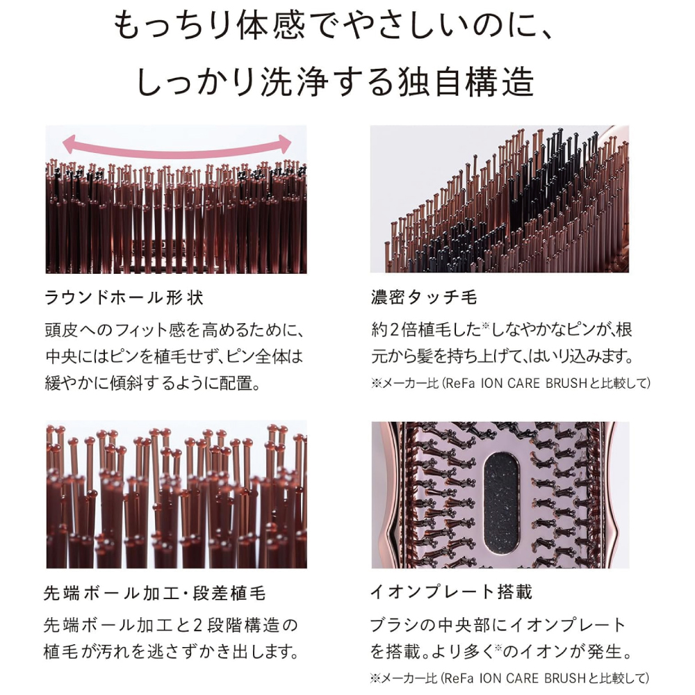 【濃密タッチ毛】約2倍植毛した※しなやかなピンが、根元から髪を持ち上げて、入り込みます。※当社比(ReFa ION CARE BRUSHと比較して)