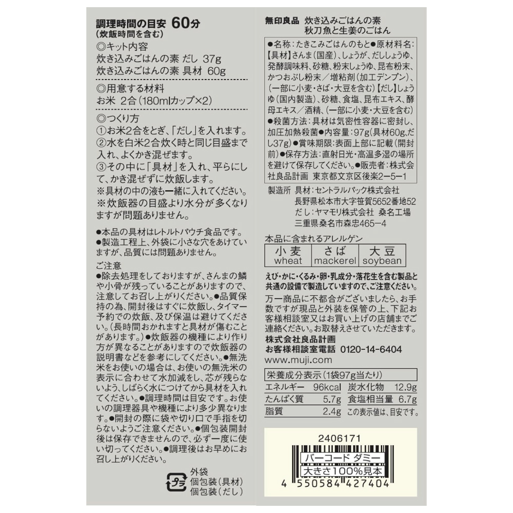 無印良品 炊き込みごはんの素 秋刀魚と生姜のごはん 97g 2~3人前 84427404