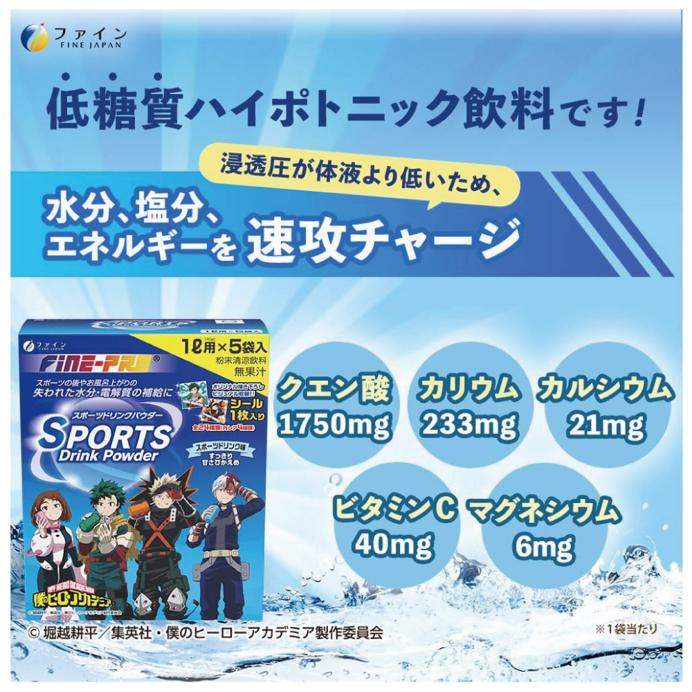 ファインプロ スポーツドリンク パウダー TVアニメ『僕のヒーローアカデミア』スポーツドリンク味 200g(40g×5袋)