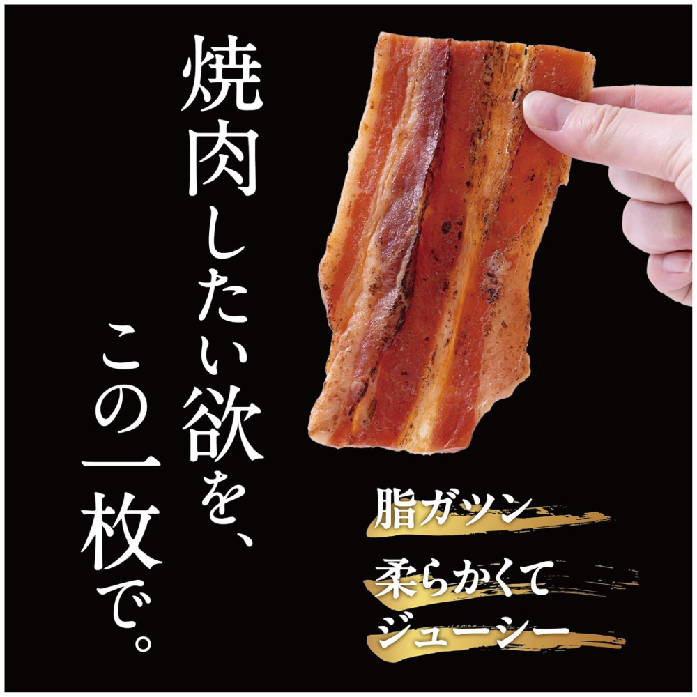 【エバラ食品の味づくり:本格派ジャーキー】焼肉のたれ「黄金の味」や「キムチの素」など、長年ご家庭の味を支えてきたエバラ食品が手がける豚バラジャーキー。培ってきた“たれ作り”の知見を活かし、肉の旨味を引き立てる味付けにこだわりました。「旨み」「クセになる」「贅沢・満足感」を詰め込んだ本格派の逸品です。
