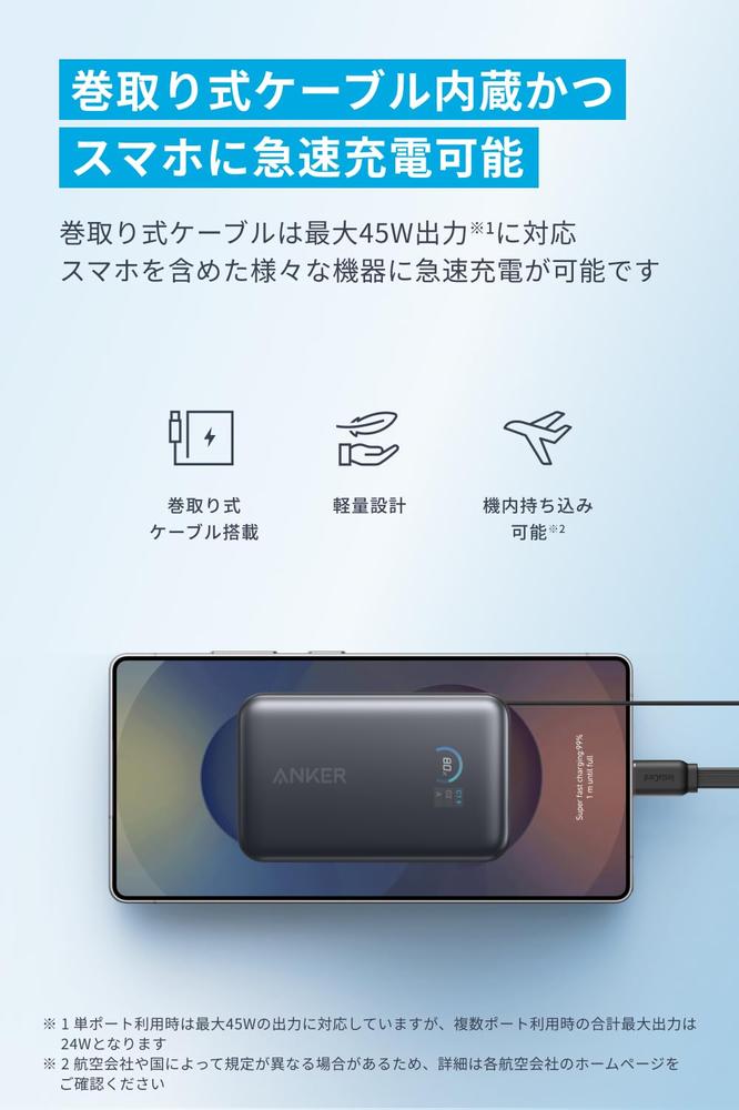 Anker Nano Power Bank (10000mAh, 45W, 巻取り式 USB-Cケーブル)