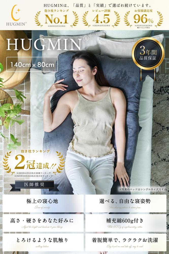 【心地よい眠りをサポートする HUGMIN 抱き枕】 「毎日の睡眠をもっと心地よく」をコンセプトにした寝具ブランドです。 HUGMINの抱き枕は、妊婦さんの負担軽減はもちろん、横向き寝や腰痛に悩む方からも高い支持をいただいているU字型設計。 体圧を分散し、からだ全体を包み込むように支えることで、自然な姿勢をキープ、快適な睡眠へ導きます。