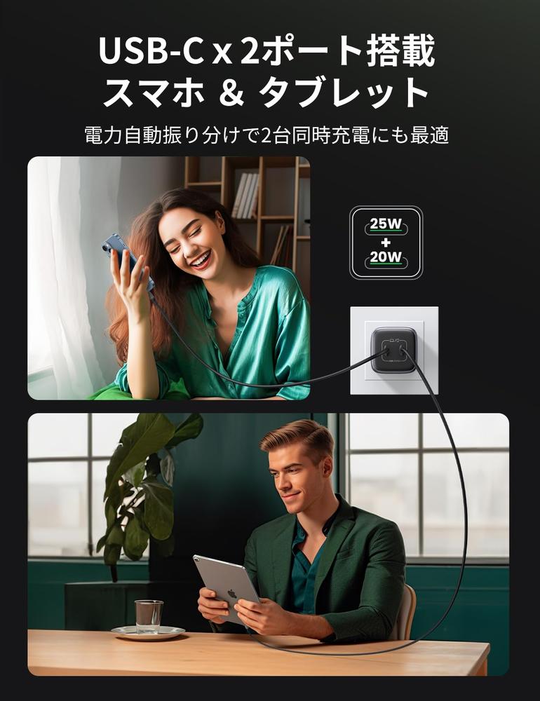 UGREEN Nexode Mini 45W 充電器 USB-C 2ポート PD&PPS高速チャージ対応