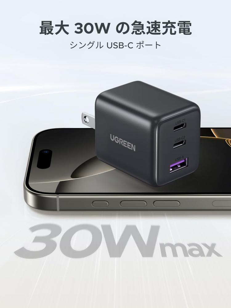UGREEN 充電器 type-c 30W (2*USB-C+1*USB-A)