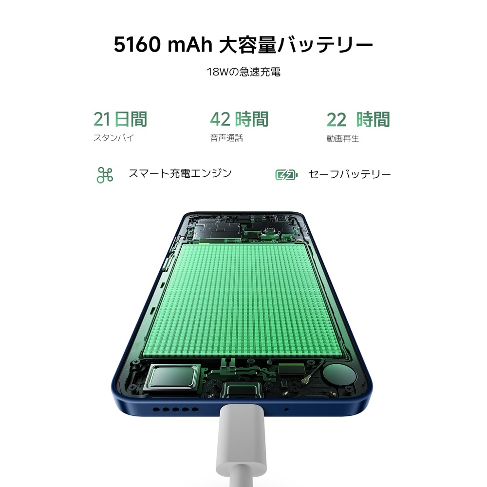 【安心して一日を過ごせる5160mAhの大容量バッテリー】大容量バッテリーと高速充電の理想的な組み合わせ。Redmi 14Cは、スマート充電エンジンと安全なバッテリー技術を搭載し、長寿命で健康的なバッテリーを実現します。