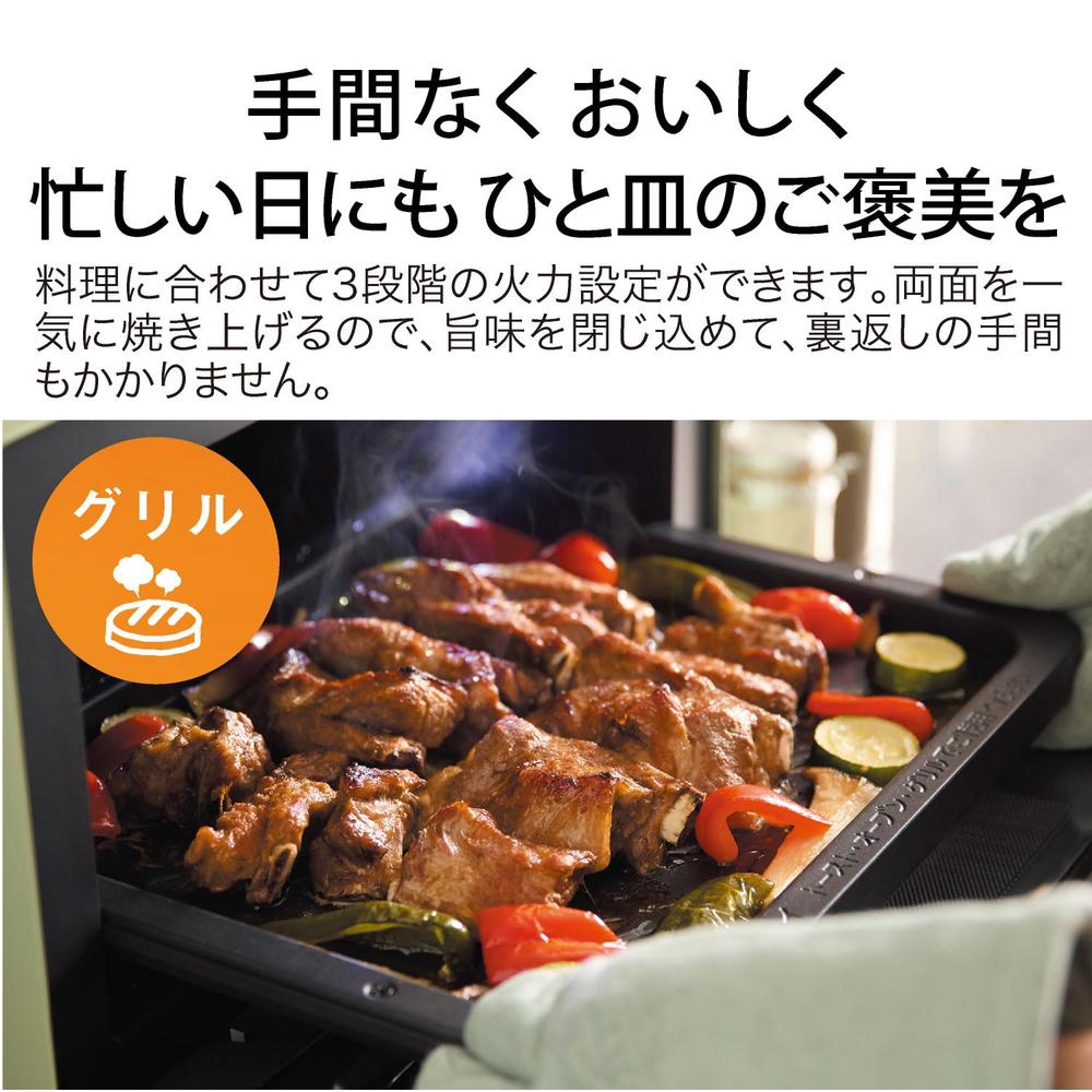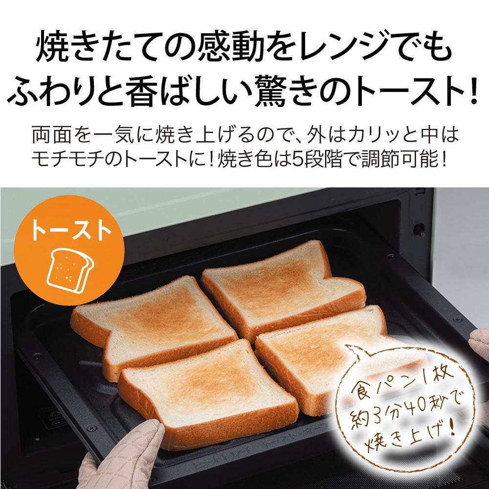 【便利な4枚焼きトースト機能&グリル機能】レンジでも香ばしいトーストを味わえるトースト機能は焼き色を5段階で調節でき、両面を一気に焼き上げるため外はカリッと中はモチモチの理想のトーストに仕上がります。さらに、3段階の火力調整ができるグリル機能で忙しい日も手間なく本格料理を作れます。