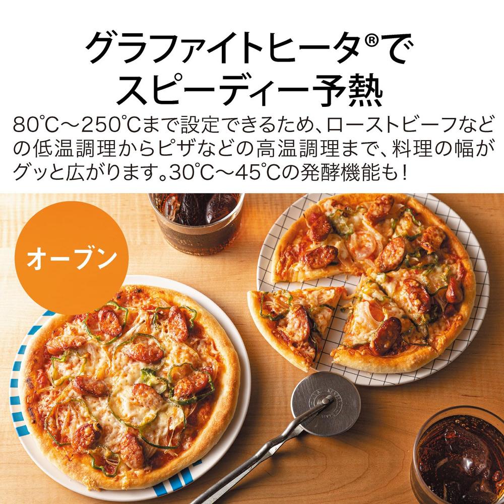 【スピーディーな予熱が可能なオーブン機能】80℃~250℃まで設定できるため、ローストビーフなどの低温調理からピザなどの高温調理まで、料理の幅がグッと広がります。30℃~45℃の発酵機能付きで気軽にパン作りを始めたい方にもおすすめ。