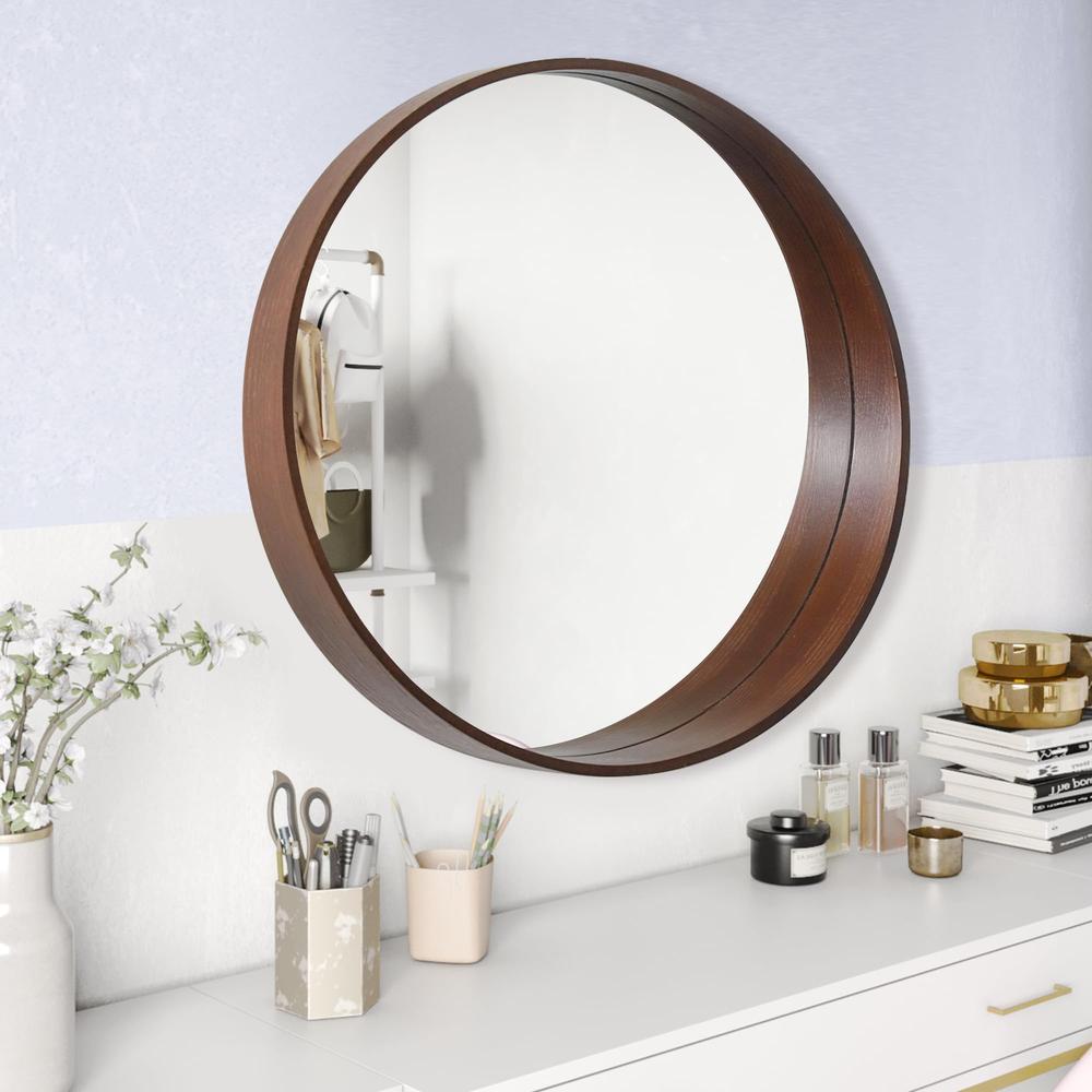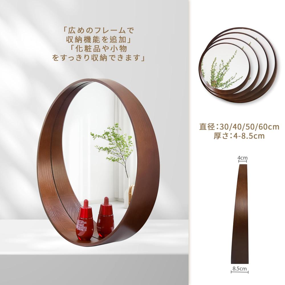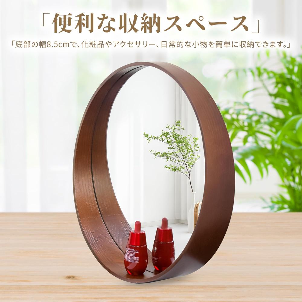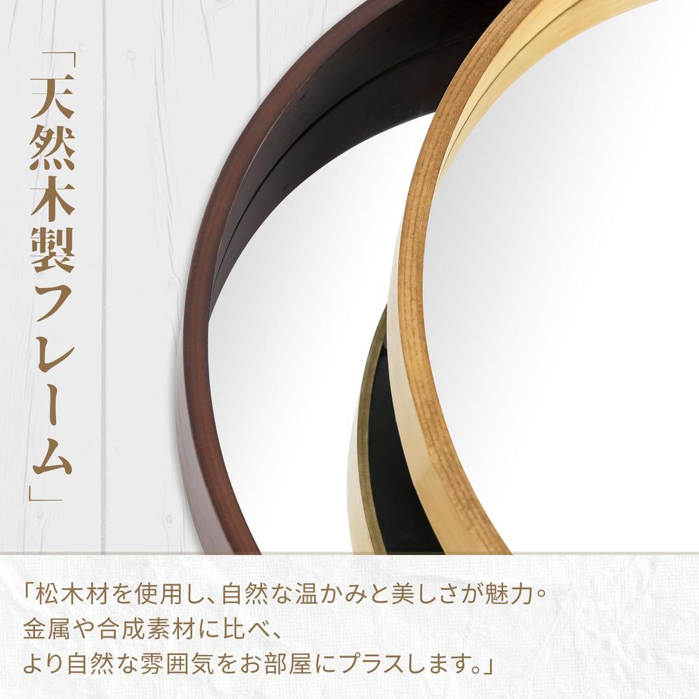 丸型 壁掛けミラー 直径60cm ウォールミラー(ブラウン, 60cm)