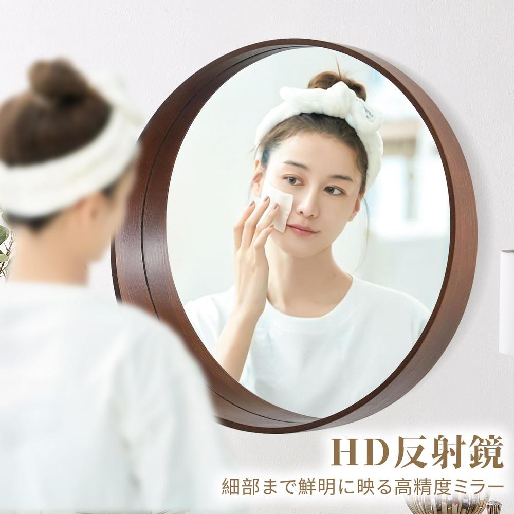 【自然で温かみのあるデザイン】 丸鏡は滑らかな曲線と温かみのある木目が特徴です。北欧モダンとナチュラルインテリア、シンプルでスタイリッシュな部屋がぴったりマッチし、玄関、リビング、寝室、洗面所などの空間を優雅で心地よい雰囲気で演出します。