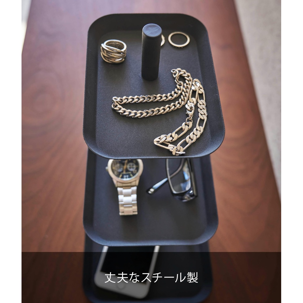 山崎実業(Yamazaki) アクセサリー 3段 トレー タワー ブラック 約W24.7XD15.7XH25.7cm タワー 小物入れ アクセサリー収納 4725