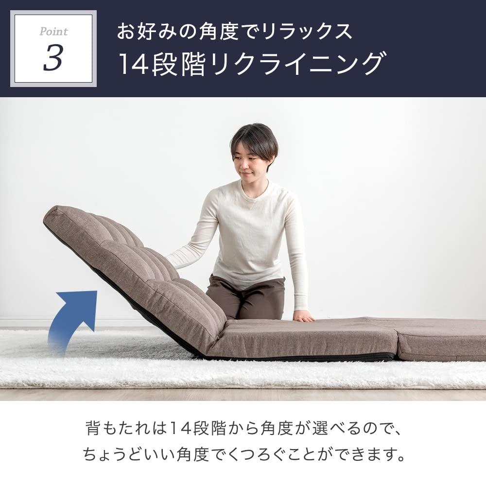 【スタッフのおすすめポイント】・シーンに合わせてスタイルチェンジ ・ふかふか座面のソファスタイル ・脚を伸ばして寛げるカウチスタイル ・来客時に便利なベッドスタイル ・14段階リクライニング機能付き ・寛ぎ方広がるクッション2個セット ・クッションカバーは外して洗濯OK ・オールシーズン快適 ファブリック