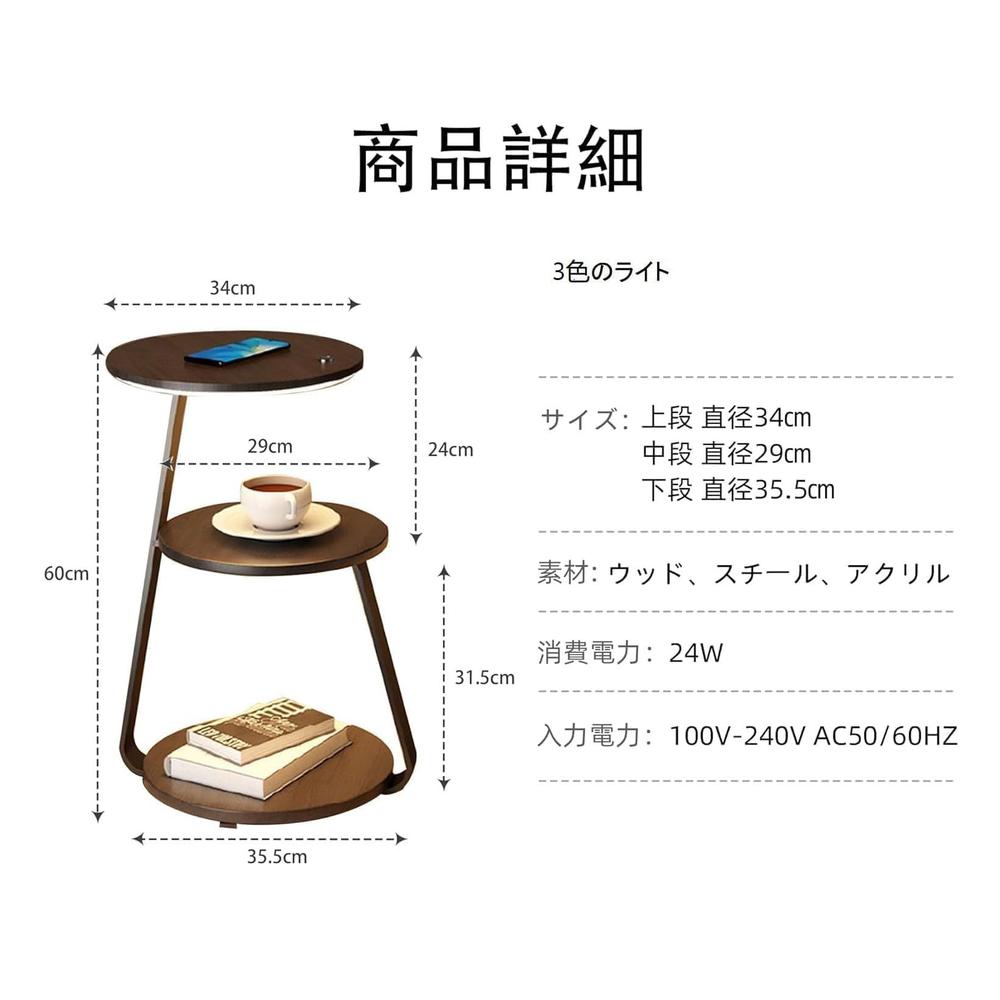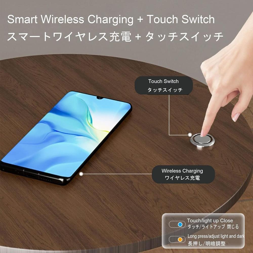 【3色LEDライト】この床??は、3色LEDバックライト(ウォーム/ホワイト/ナチュラル)が付属しており、タッチボタンを押すだけで調整可能な照明効果が得られます。とても便利なベッドサイドテーブルの常夜灯です。
