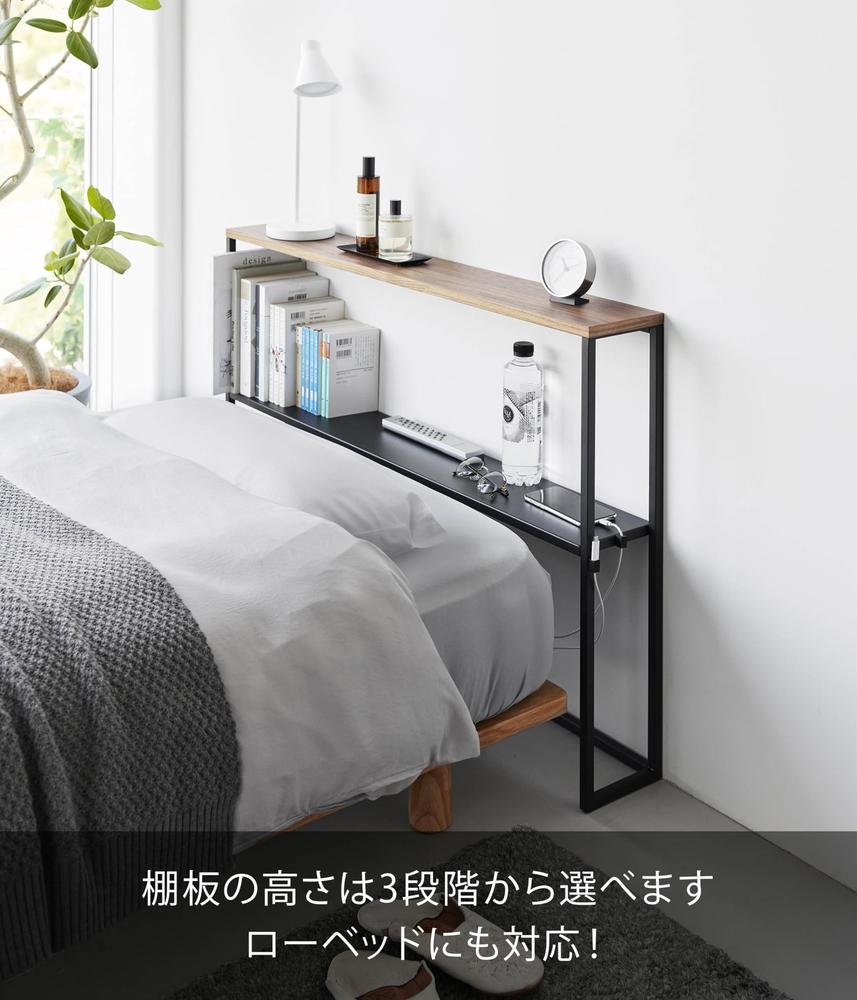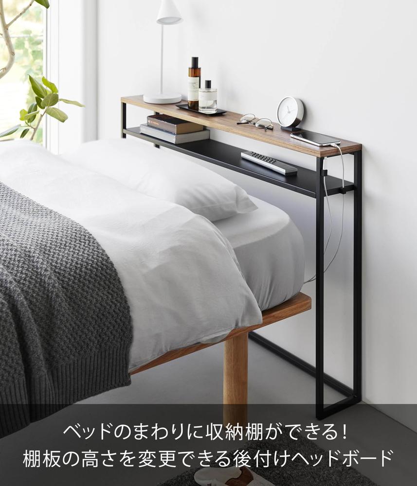 山崎実業(Yamazaki) 棚板が動く 後付け ヘッドボード ブラックW100×D15×H67.2cm タワー tower 3段階 高さ調節 ケーブルホルダー付き 1683