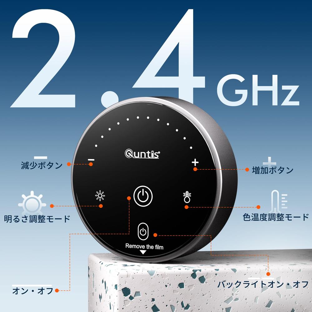 無線リモコン+間接照明のバックライト】 Quntisモニターライトは新設計の2.4G接続技術を搭載したリモコンが付属しており、長寿命で直感的なボタン操作が可能。省エネながらも照明の使用シーンに適したボタン光源を増やしています。バックライトは後面照明として追加され、暗い環境での使用時にはライト範囲を広げ、環境の明るさを調整して目の快適さを向上させます。デスクトップでの使用も考慮され、読書や筆記などにも便利です。