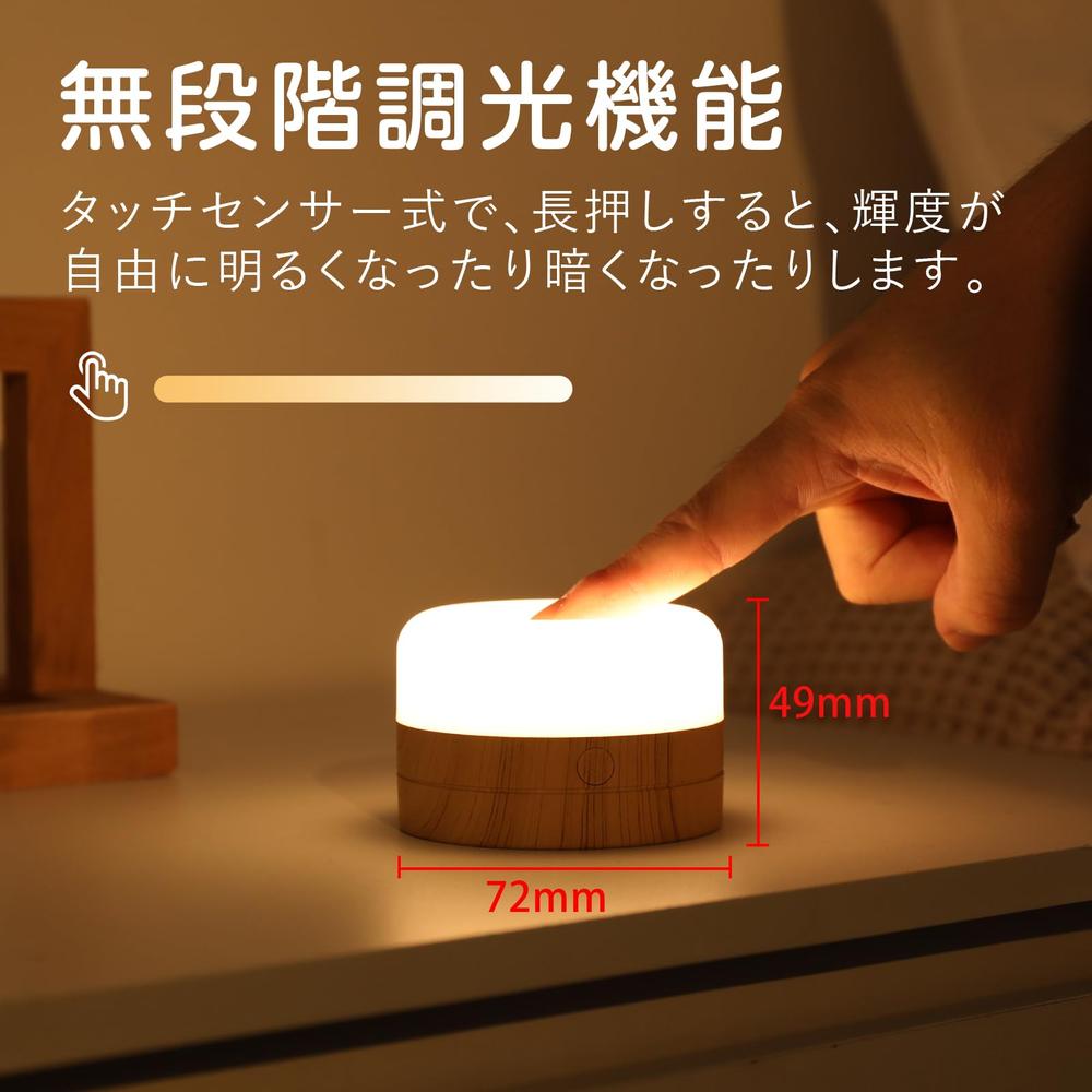 【3色温度切り替え・無段階調光可能】タッチセンサー式なので、1回タップ:点灯/消灯、2回タップ:色温度調節できます、長押し:無段階調光。光量が最小にすれば、睡眠時も邪魔にならず、置き場所を変えてみるだけでも雰囲気の変化を楽しめます。