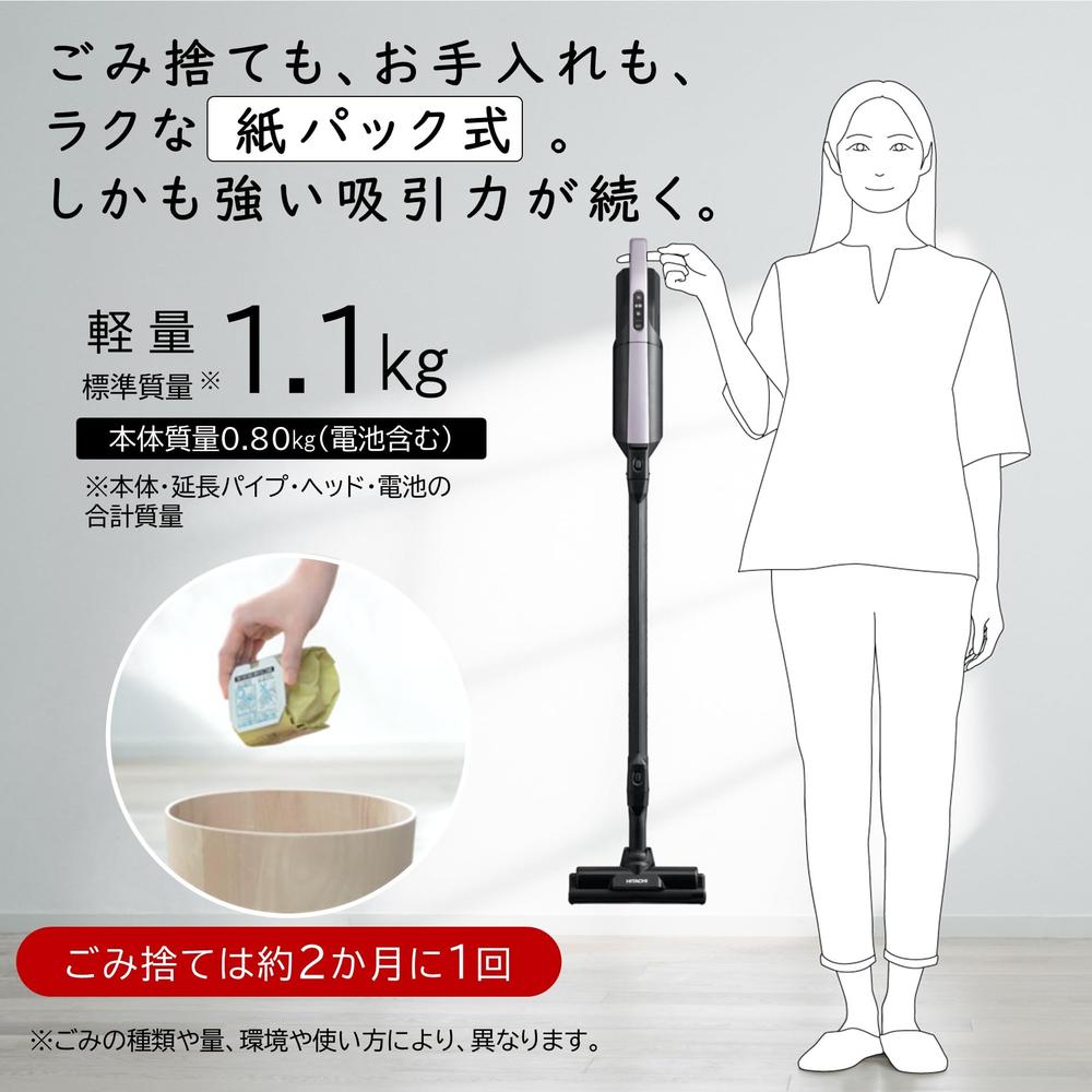 日立(HITACHI) 掃除機 紙パック式スティッククリーナー PKV-BK3K V ライトラベンダー