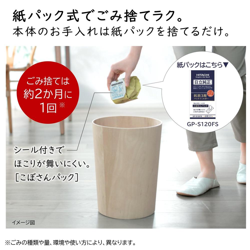吸引力が続く紙パック式。ごみがいっぱいになったら捨てるだけ。
