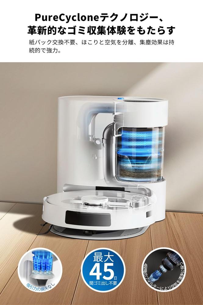 【革新的な自動集塵ドック・掃除習慣のレベルアップ】 DEEBOT N20ファミリーは画期的な自動集塵ステーションを採用します。最先端のECOVACS PureCycloneテクノロジーと洗練された4段階のフィルターシステムをシームレスに統合され、紙パック不要な設計と衰えない集塵力で、持続可能性を実現します。それにより、手間のかからない、環境にも優しい掃除の新時代が到来します。
