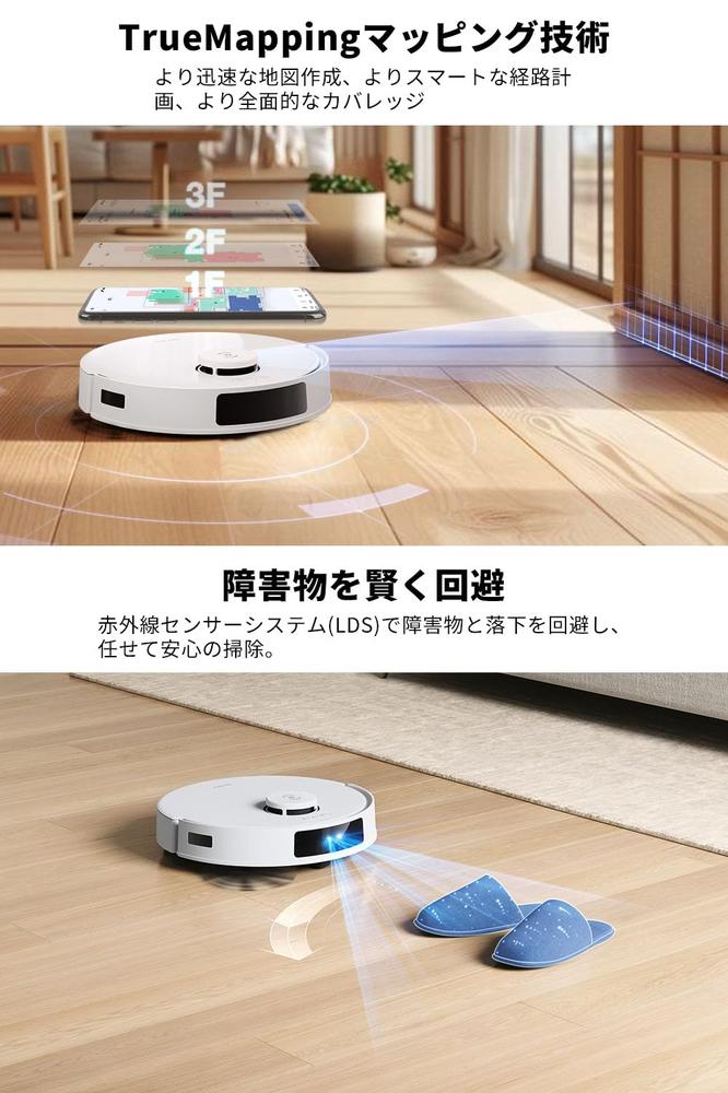 【インテリジェント掃除の実現】 スムーズなナビゲーションと連続清掃。インテリジェントな掃除を実現します。緻密なナビゲーションを通じて、速やかに部屋内で移動しながら、掃除やモッピングを滞りなく実施することで、従来の枠を超えた比類なき清掃体験をもたらします。