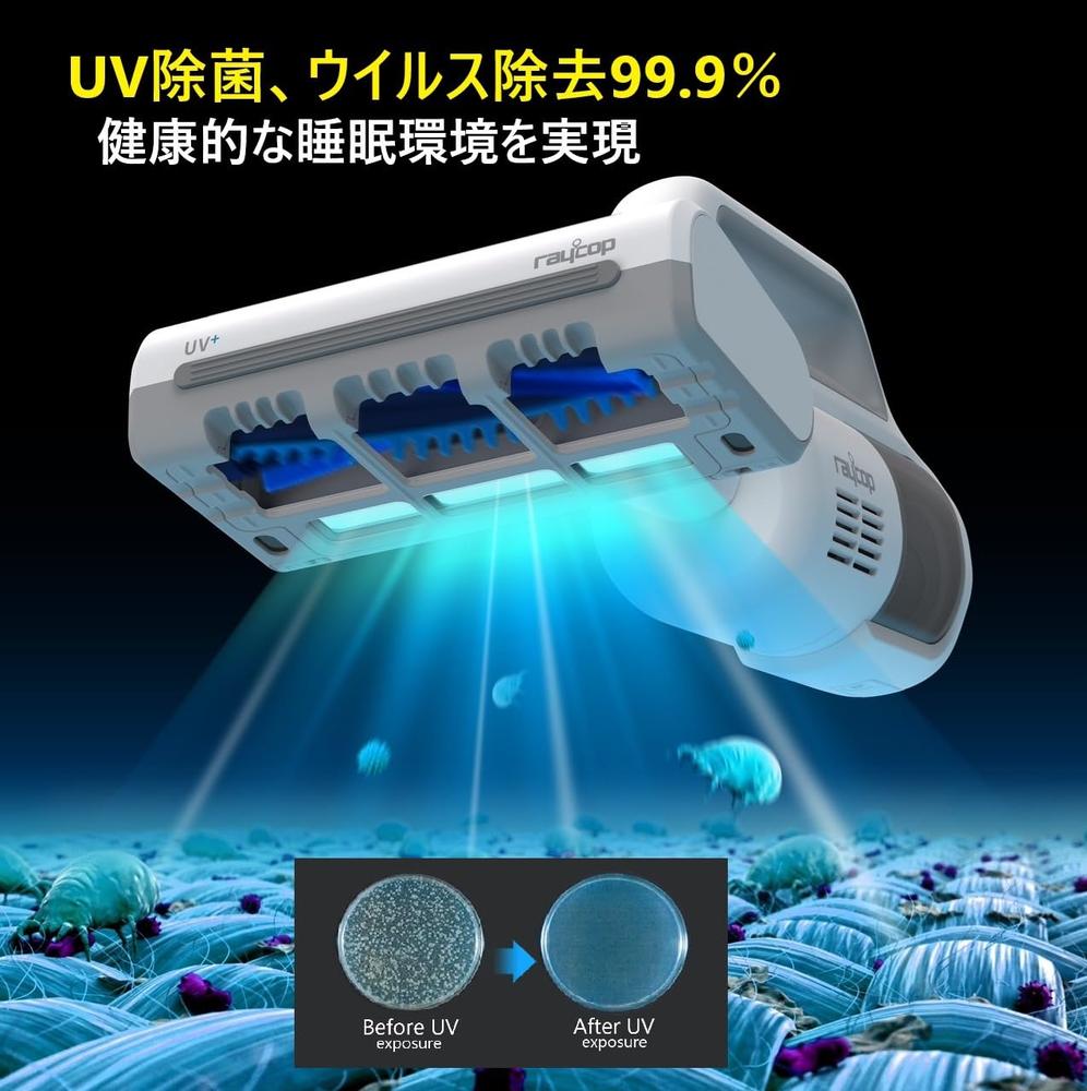 レイコップの「光クリーンメカニズム」でUV除菌、99.9%以上ダニ・ハウスダストを除去。コードレス&自立式収納で置く場所を選ばず、サッと手に取れてデイリーケアがより身近に。