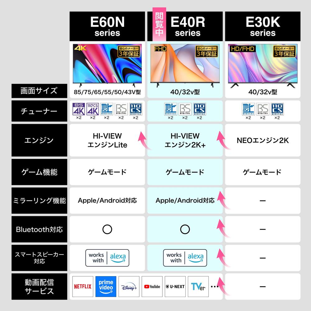 ハイセンス 40V型 40E40Rフルハイビジョン液晶テレビ 2025年モデル