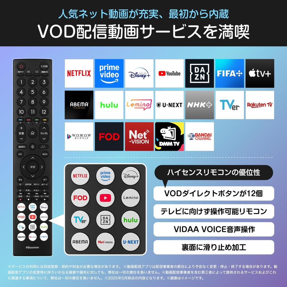 【VIDAA OS】人気の動画配信アプリが初めから内蔵!すぐに動画配信が楽しめます。