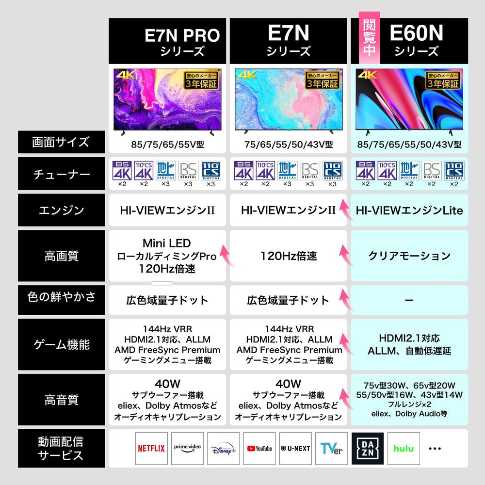 ハイセンス 43V型 43E60N 4Kスマート液晶テレビ【Amazon.co.jp限定】