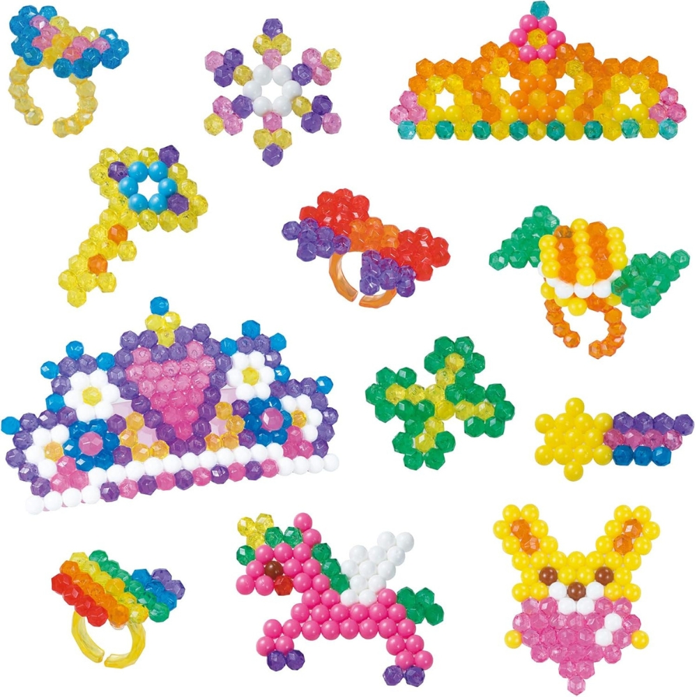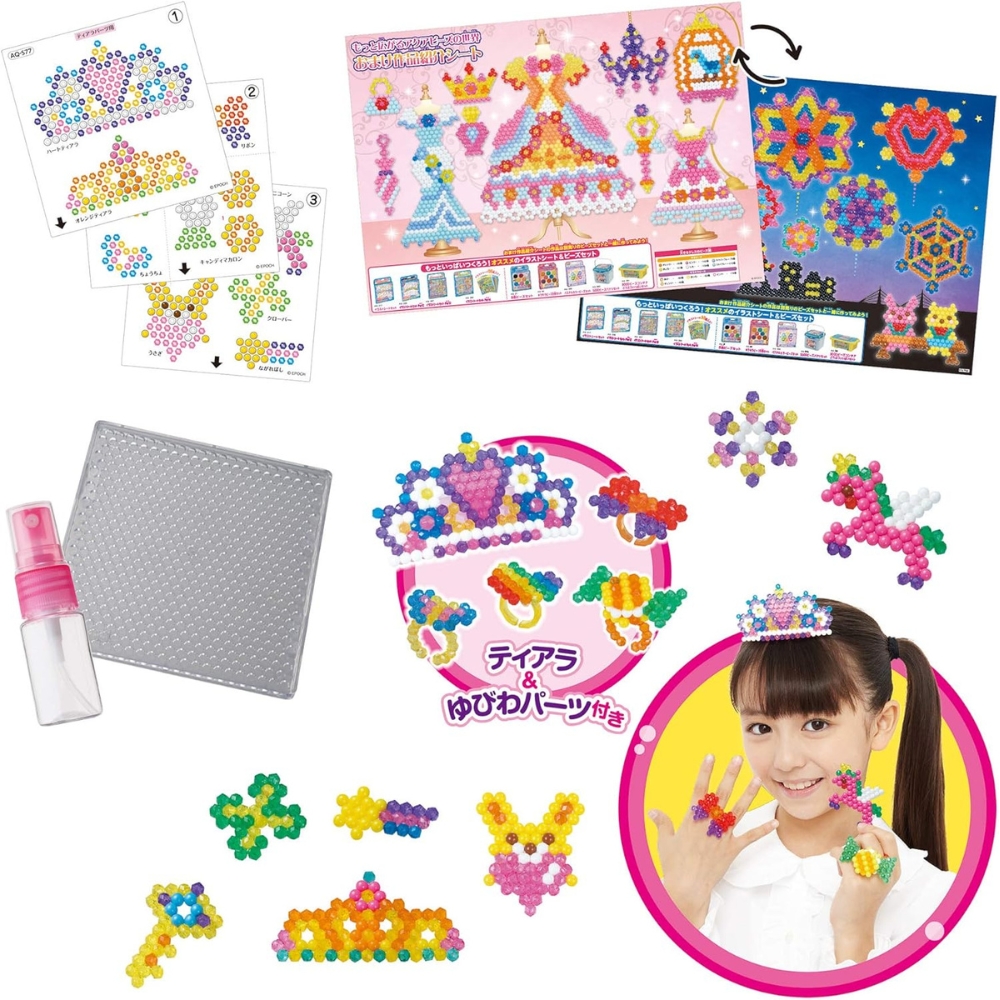 キラキラビーズ多めでティアラやゆびわを作れるアクセサリーパーツも入ったオールインワンセットです。